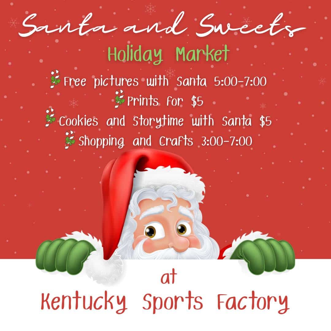 Santa’s coming to town, and he’s bringing holiday cheer with him! Join the Kentucky Sports Factory for a festive celebration filled with twinkling lights, delicious treats, local crafts, and plenty of Christmas magic.